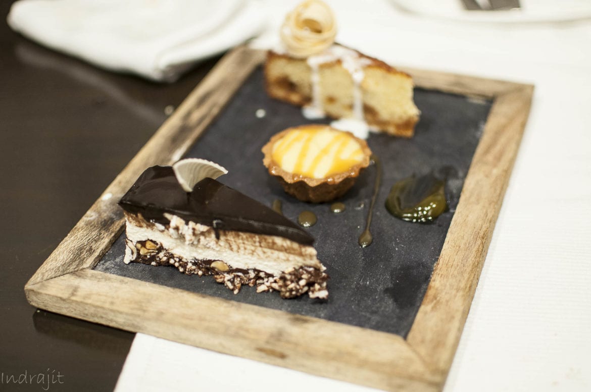 The dessert platter had a nice citric food tart, a coffee flavored mousse with fried-muri base (yes, you read it right and it was brilliant) and a carrot walnut cake.